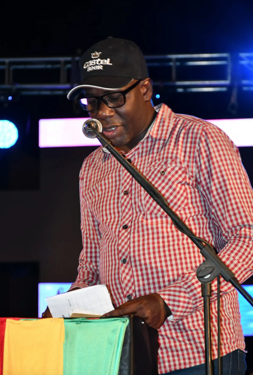 Sacré Marley du Public et Marley d’Or 2023, Folio le Nuage reçoit son trophée des mains de M. Fidele Aimé OUEDRAOGO, Chef de Division des Ventes Régionales Ouaga de SODIBO, représentant le Directeur Général de BRAKINA.
