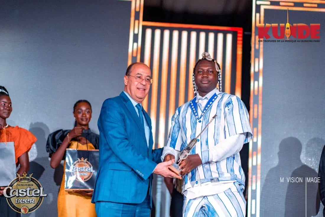 Partenaire majeur de la soirée, Castel Beer a parrainé le prestigieux Kundé de l’artiste le plus joué en discothèque. Cette distinction est revenue à Floby, figure emblématique de la scène musicale burkinabè. Il a reçu son trophée et une enveloppe d’un million de FCFA des mains de M. Mohamed Paré, Chef de Division Marketing Opérationnel de BRAKINA.