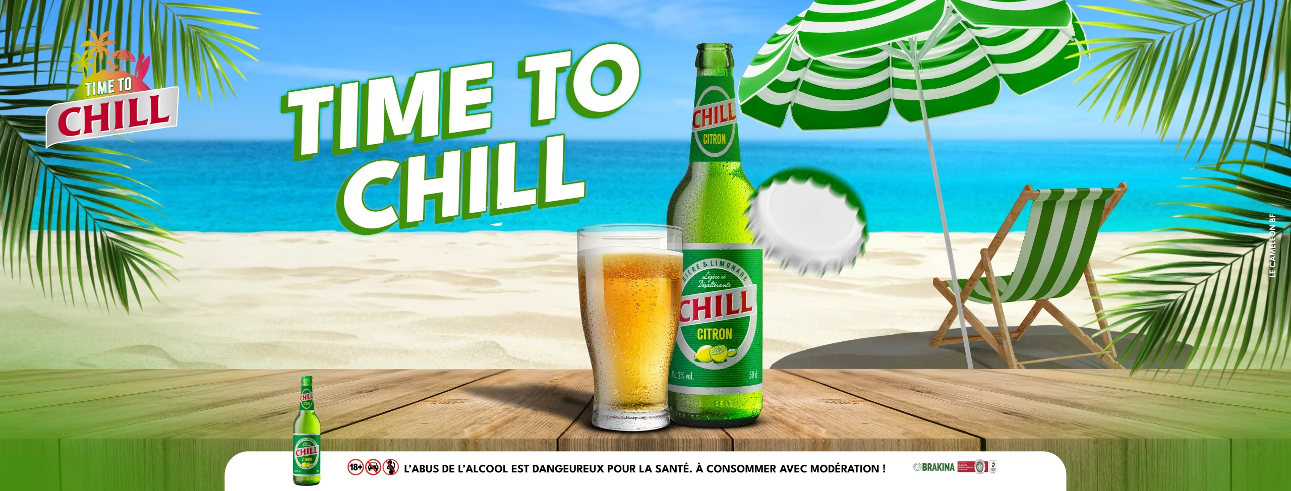 Chill est une bière aromatisée (mélange de bière et d’extrait de citron) et faiblement alcoolisée, qui s’adresse à une cible jeune et à la gente féminine.